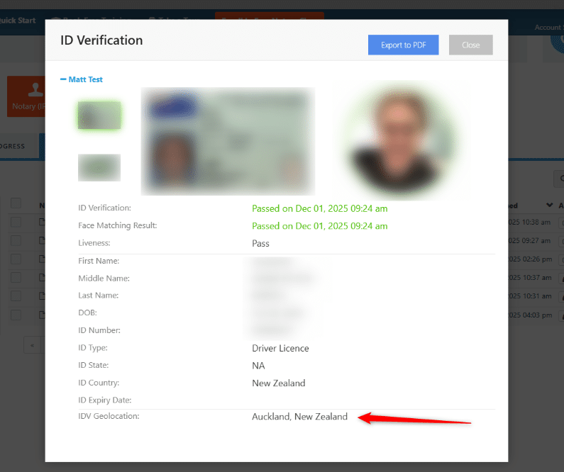 The ID Verification results are in the same place as before, however, now you can see an additional line for Geolocation.