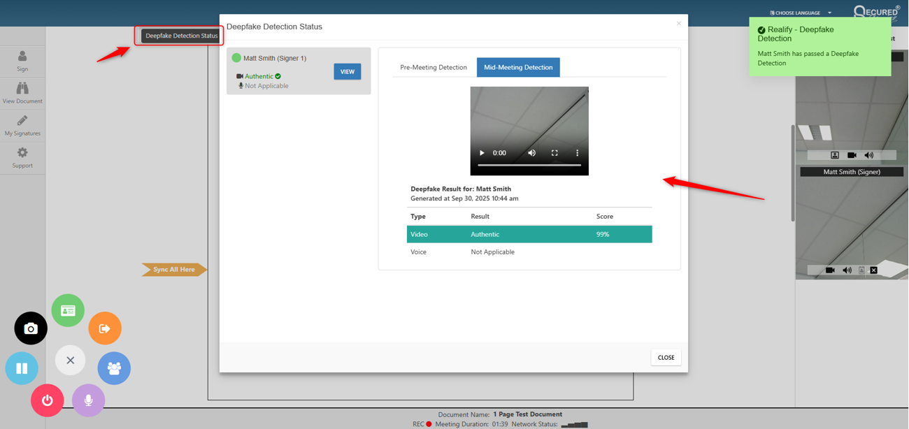 1. Realify – Deepfake Detector – protect against deepfakes in your online notarizations and video signing meetings with our new feature Realify – Deepfake Detector.