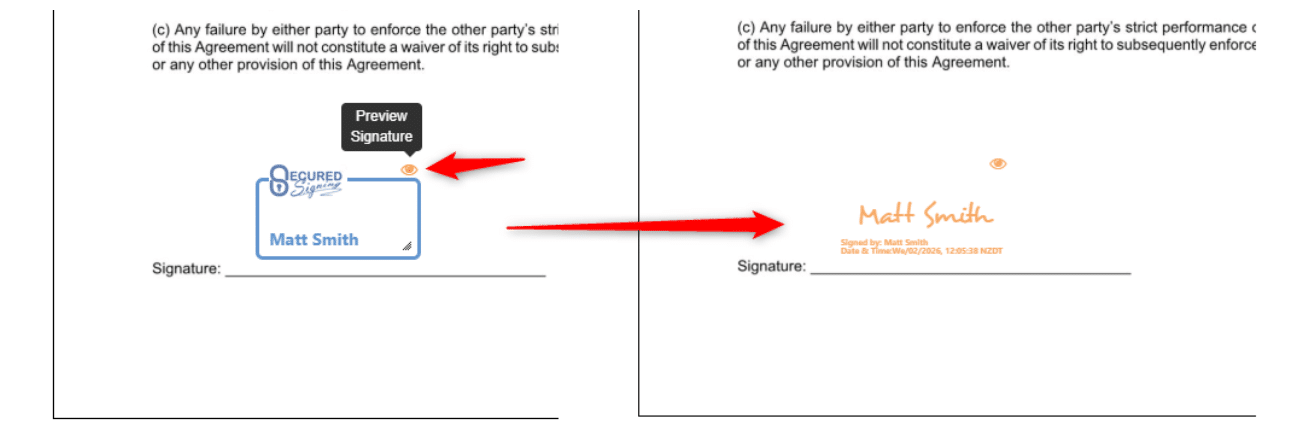You can now see exactly how an invitee’s signature will appear on the final signed document. This allows you to adjust, resize, and align fields with confidence before the document reaches your clients.