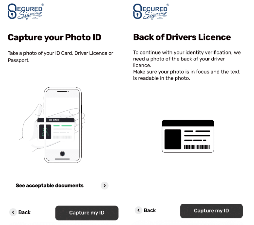 Then, the invitee will be asked to first capture a photo of the front of their ID, and then a photo of the back of their ID.